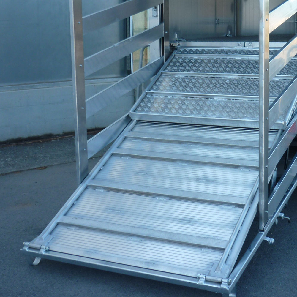 Rampas ergonómicas y puertas traseras que facilitan la carga y descarga de los animales.